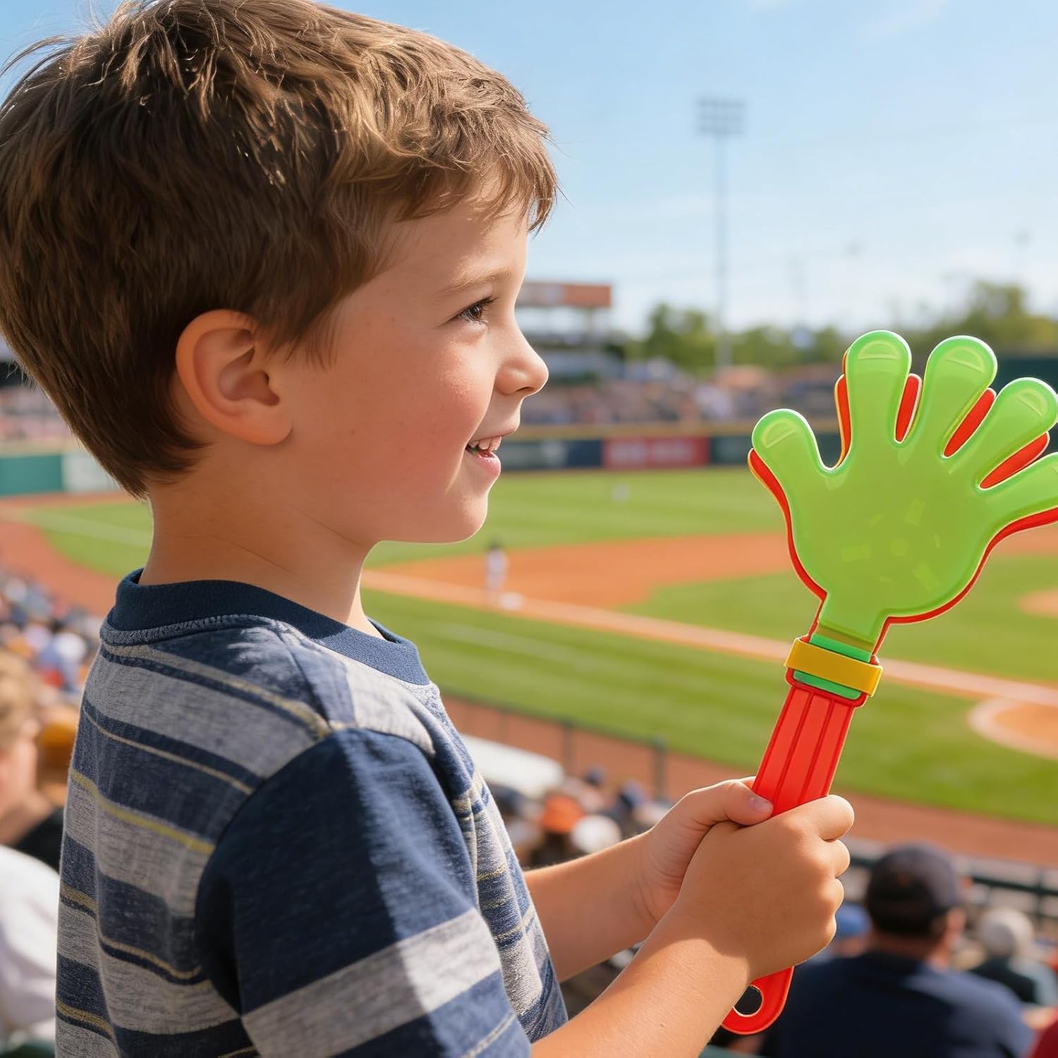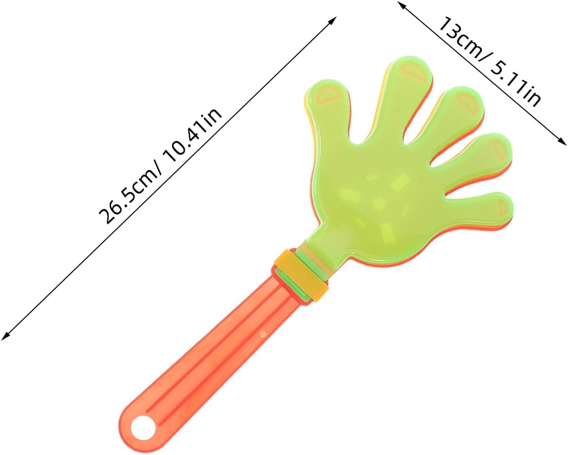 DescriptionSmall hand clappers noisemakers bulk sets are perfect for parties, sports games, and celebrations, bringing energy to any occasion. Their brightly colored design doubles as a clapping tool and event decoration, a reliable and simple way to create a fun atmosphere. Use these cheering hand clappers to express excitement and support at every special event.Features-Color:Multi-Material:Plastic-Size:26.50X13.00X1.50cm/10.43X5.12X0.59in-Effortless Applause: With these hand clappers, you can easily show your excitement at football games, sports game noise maker set or football clappers noise maker-Hand Clapping: The realistic sound from these clapping hands noise maker tools multiplies the energy in events celebrations noisemakers or party favor clappers moments-For Every Event: Ideal for use as plastic hand clappers at parties, concerts, or as cheering prop at sporting matches, ensuring you're part of the loudest support-stable and Reliable: Designed to endure frequent use, these hand clapper toys keep working at their best for numerous events, be they party clappers or cheering hand clapper needs-Clean Easy: Quickly clean these small hand clappers with a simple wipe, always ready for reuse as festival party hand clappers for kids or adults