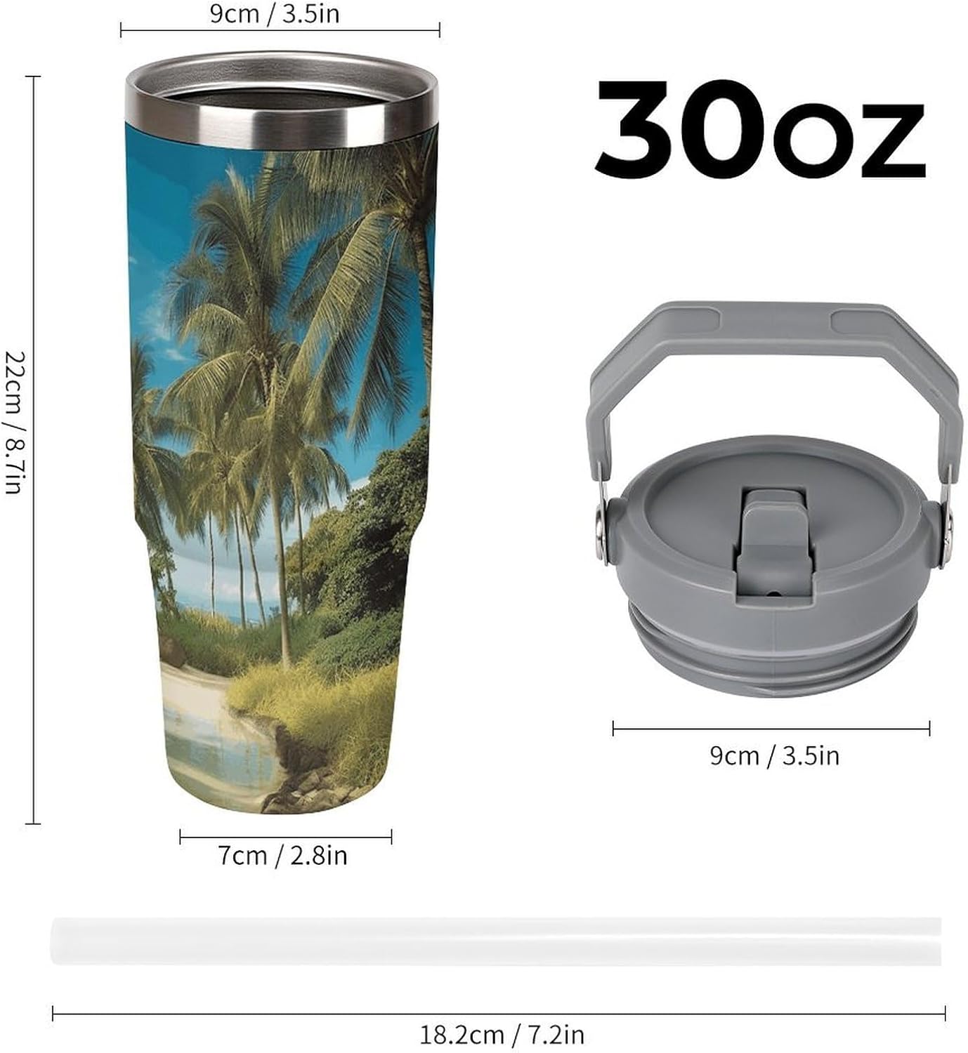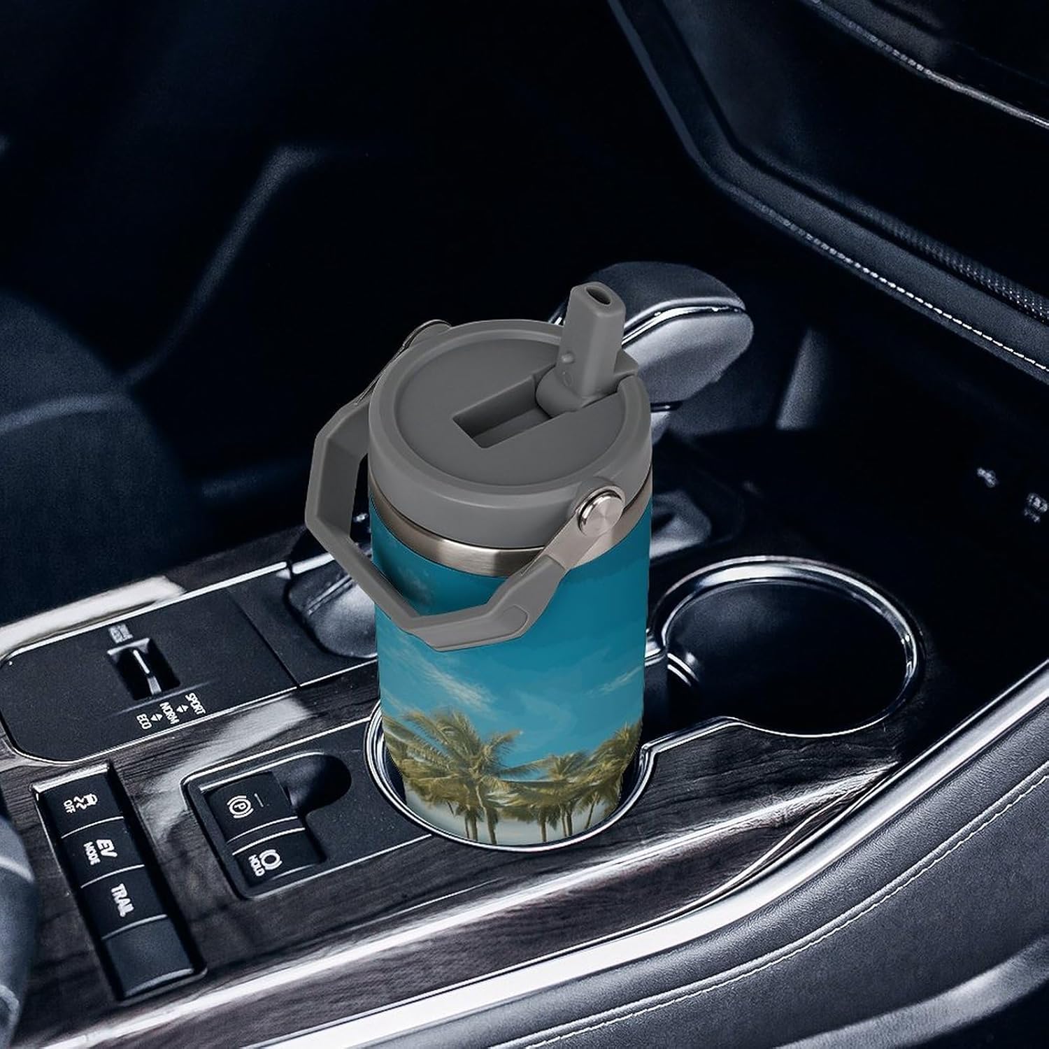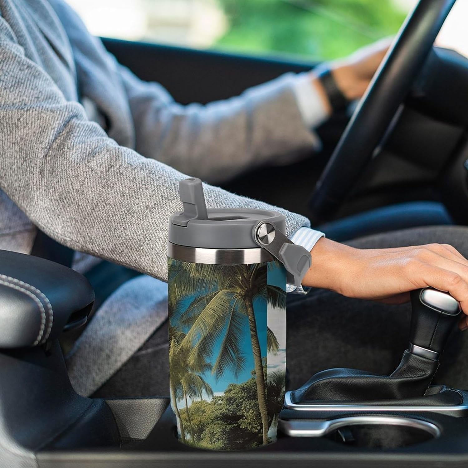 Our Tropical Coconut Trees Beach travel water bottle is made of food-grade stainless steel. The wide mouth design makes it easy to clean and add ice, and the powder-coated exterior is non-slip and durable, ensuring driving safety.Whether you prefer sipping or quenching your thirst, this personalized insulated mug has you covered. Featuring a splash-proof straw design, a sealing ring securely holds the reusable straw, and a drinking spout and full-coverage lid for enhanced leak-proof performance, this mug allows you to easily carry ice water to work, meetings, the gym, or on trips.You can give it to your friends and family as a birthday, Mother's Day, Father's Day, New Year's, Thanksgiving, and holiday gift. It's a thoughtful present.