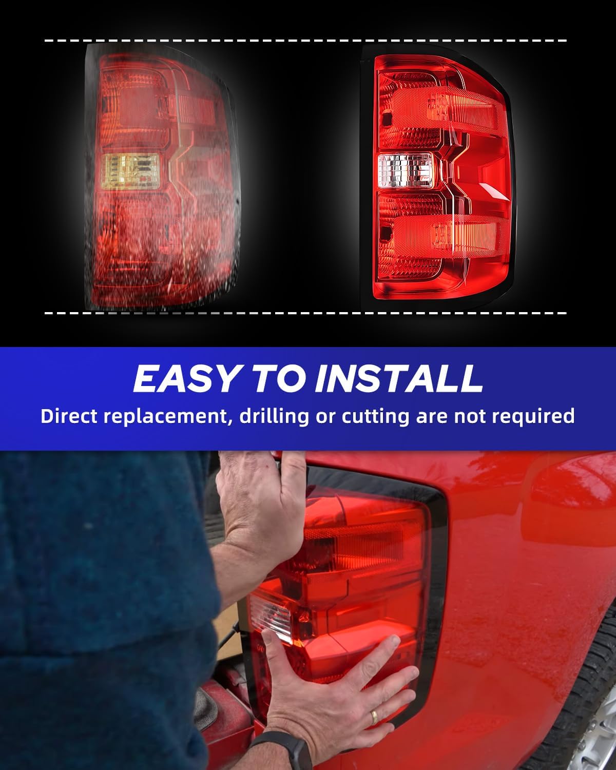 • Vehicle Fitment: Factory OEM tail lights replacement for 2014-2018 Chevy Silverado 1500/ 2015-2019 Chevy Silverado 2500HD 3500HD/ 2015-2019 GMC Sierra 3500HD with dually wheels. [NOTE] - Fits model without factory LED tail lights.