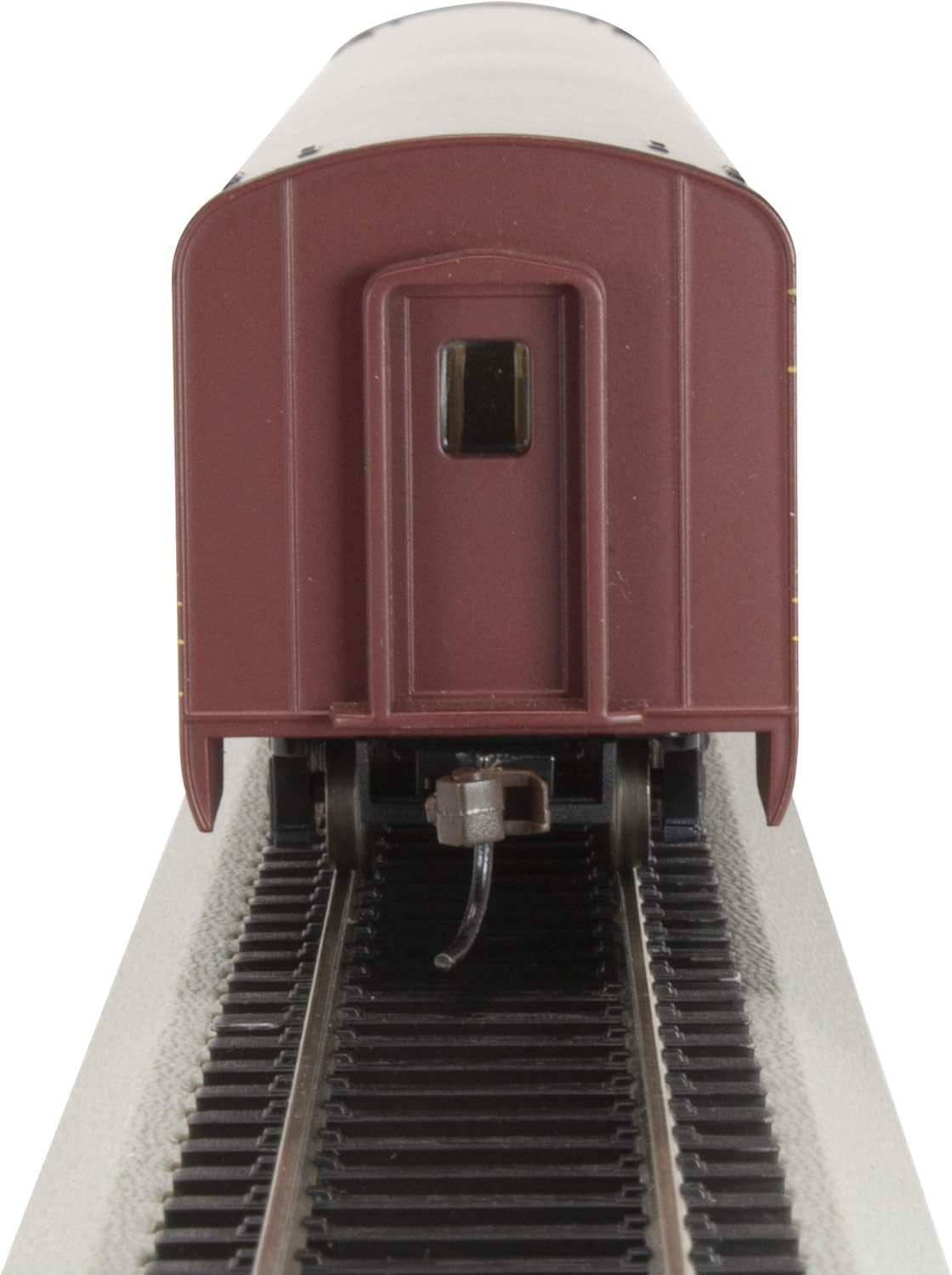 85' Smooth-Side Coach Car with Lighted Interior - PRR #4251 - FLEET OF MODERNISM - HO Scale. In the 1930’s lighter weight materials allowed for the development and production of a variety of coach, baggage, and observation cars as railroads ushered in the beginning of the streamline era. Materials like stainless steel, and aluminum, allowed for passenger cars to have smooth or fluted sides and smooth roof lines. Bachmann faithfully reproduces these passenger cars that are fully assembled with features that include; lighted interiors, Highly Detailed Painted Bodies with Precision Graphics (where applicable), Blackened Machined Metal Wheels with RP 25 Contours, Magnetically Operated E-Z Mate Couplers, Non-magnetic Blackened Brass Axles with Needle-point Bearings, Celcon Trucks, and Added Weight for Optimum Tracking Performance.