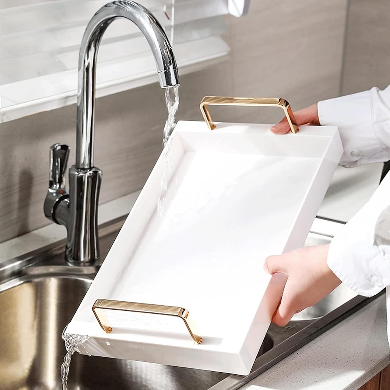 Convenient Handles: The tray is equipped with convenient handles on each side, allowing for easy transportation and serving. The ergonomic design ensures a comfortable grip, making serving a breeze.Product name : Tray , Serving trayProduct material : PlasticProduct size:13.8 × 8.7× 1.6 inchesProduct packaging : 1 piece