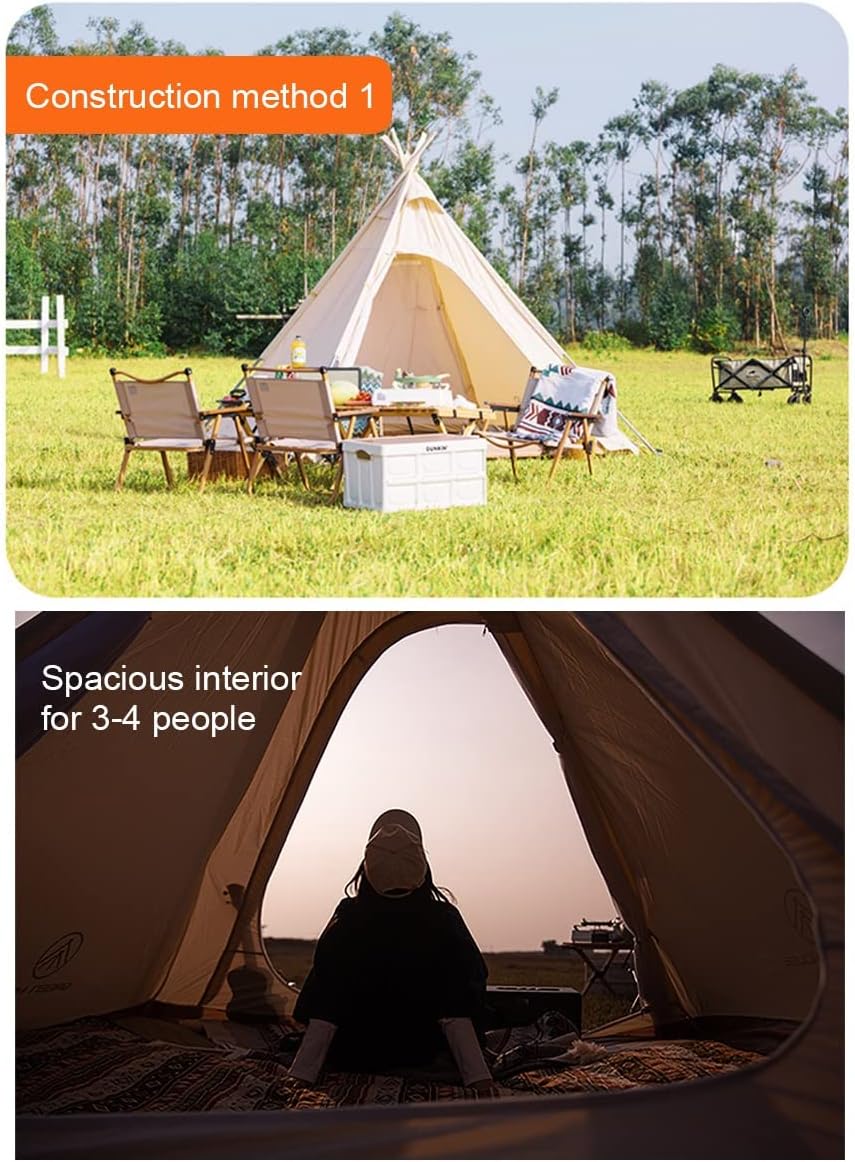 SPECIFICATIONS Tent material: Oxford cloth SIZE: 220 x 220 x 200cm Storage: 65x25x25cm Include:Tent x 1 Accessories Handbags: X 1 Ground pegs: X 8 Wind rope: X 4 Pole: X 4 Tips: We only sell tent and accessories, not including other decorations. 1. During shooting, the actual color of the image may differ slightly from the product due to factors such as light, camera, display settings, and so on. View the actual color. 2. The measurement data is manual measurement, for reference only. If there is a difference of t±1cm between the actual and the measured, it is within the range of the industry standard, please be aware of this.