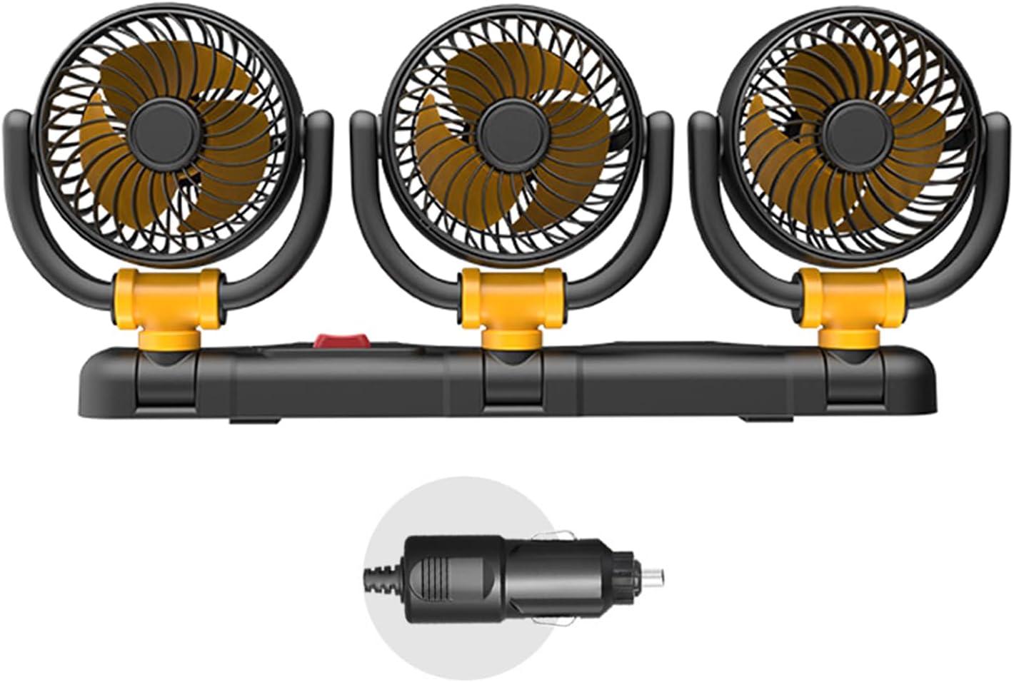 Features: unparalleled cooling with our triple head car and home fan, designed to provide a wide airflows ranges, ensuring every corner of your vehicle or home stays refreshingly cool. Featuring double power option, this fan supports both car power outlets and home sockets, making it multifunctional for various settings. Its quiet operations technology ensures minimal noise, for sleep and work environments. Ideal for long distance driver seeking comfort during travel, family looking to enhances their living spaces, outdoor enthusiasts enjoy camping or picnics, and office workers needing a coolers workspaces. for use inside vehicles during long trips or daily commutes, at home in bedrooms, living rooms, and studies, or outdoors at campsites, barbecues, and beaches where portable fans are needed. Crafted from abs materials, this fan not only prioritizes user with its protective mesh but also promotes health and well being. Specifications: Component:ABS Voltages:5V/12V/24V Size:Approx.15x8x45cm/5.9x3.14x17.71inch Note: 1.Please allow 1-2cm errors due to manual measurement, make sure that you donot mind befores you order. 2.Due to the differences between different monitors, the picture may not reflect the actual coloring of the item. Thanks for your understandings. Package includes: 1pcs Three Headed Fan