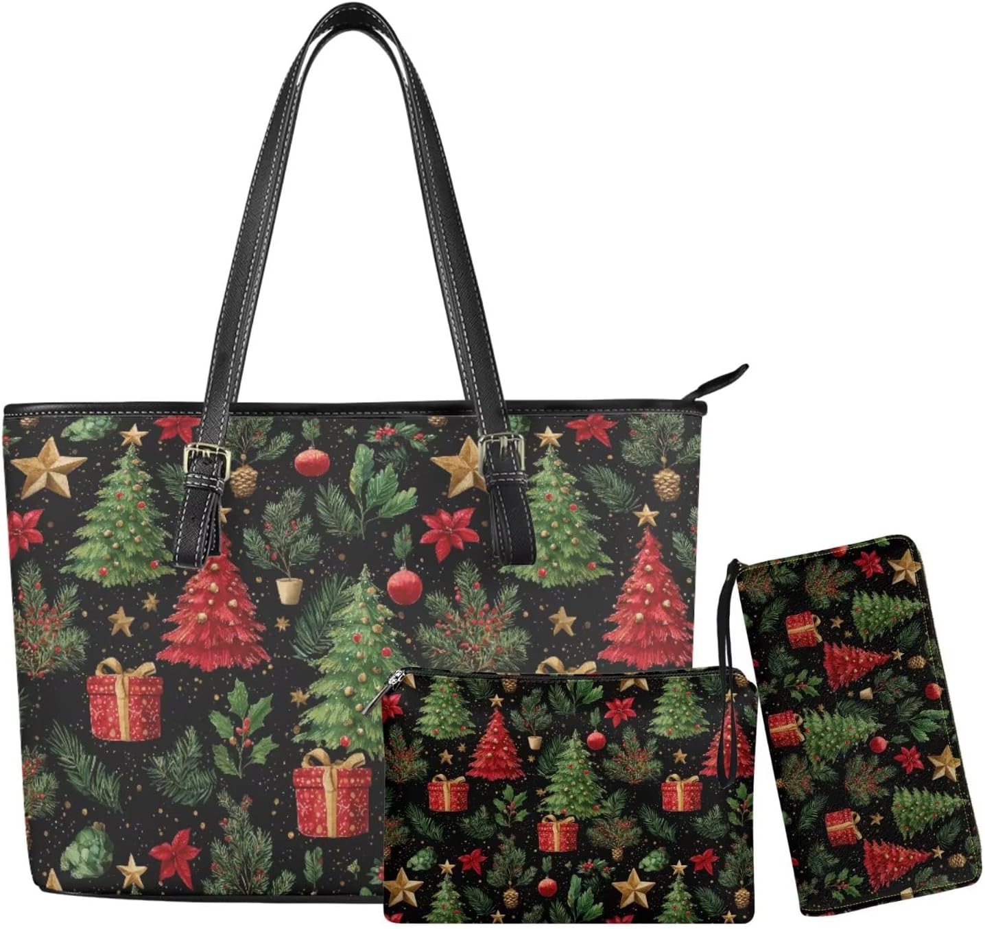 Package:1* Coldinair Shoulder Handbag Tote Purse Large Laptop Bag for Women,1* Leather Wallet Clutch,1* Cosmetic Bag Product: -Size: Tote Bag,15.7 x 9.8 x 5.1 in( 40 x 25 x13 cm),Wallet,7.9 x 1 x 4.3 in( 20 x 2.5 x11 cm) -Material:PU Leather,Lightweight and Waterproof -Feature:Large Capacity,Sturdy and Soft Handle,Secure Zipper Warm Tips: -Due to manual measurement, there may be 1-2cm deviation exist. -Actual color may be slight difference between the monitor display picture because of the light brightness.