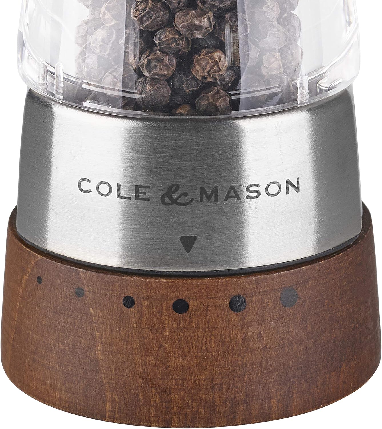 The Cole and Mason Derwent mills are an ideal balance of elegantly contemporary and classically elegant. Made from crystal clear acrylic and sustainably sourced beech wood finished in a forest stain they make a beautiful addition to any home. The acrylic body ensures you can always view how filled the mills are. As part of the Cole and Mason Gourmet Precision range they provide you with the confidence to enhance the flavour of any meal through seasoning as a professional would. The Grind Select feature has pre-selected settings that have been tried and tested to ensure you always get the very best from your mills and the very best from your meals. The pepper mill has 6 settings whilst the salt mill has three, ranging from fine to coarse. Both mills come filled with premium quality whole black peppercorns from Vietnam and coarse sea salt from Belgium so you can start using from the moment you receive them. When you do need to refill, simply pull off the wooden top cap. The wide neck of the acrylic body makes refilling easy and mess free. Fill up with your favourite whole peppercorns and coarse salt, replace the top and continue to enjoy expertly seasoned dishes. All Cole and Mason mills are covered by the lifetime mechanism guarantee. The Gourmet Precision pepper mechanism is made from hardened carbon steel that strips instead of crushing peppercorns allowing them to release their natural oils which gives you more flavour with every turn whilst the salt mechanism is made from diamond-sharp ceramic. Beautifully presented in a hand-made gift box making them a ideal gift for a loved one or even yourself.