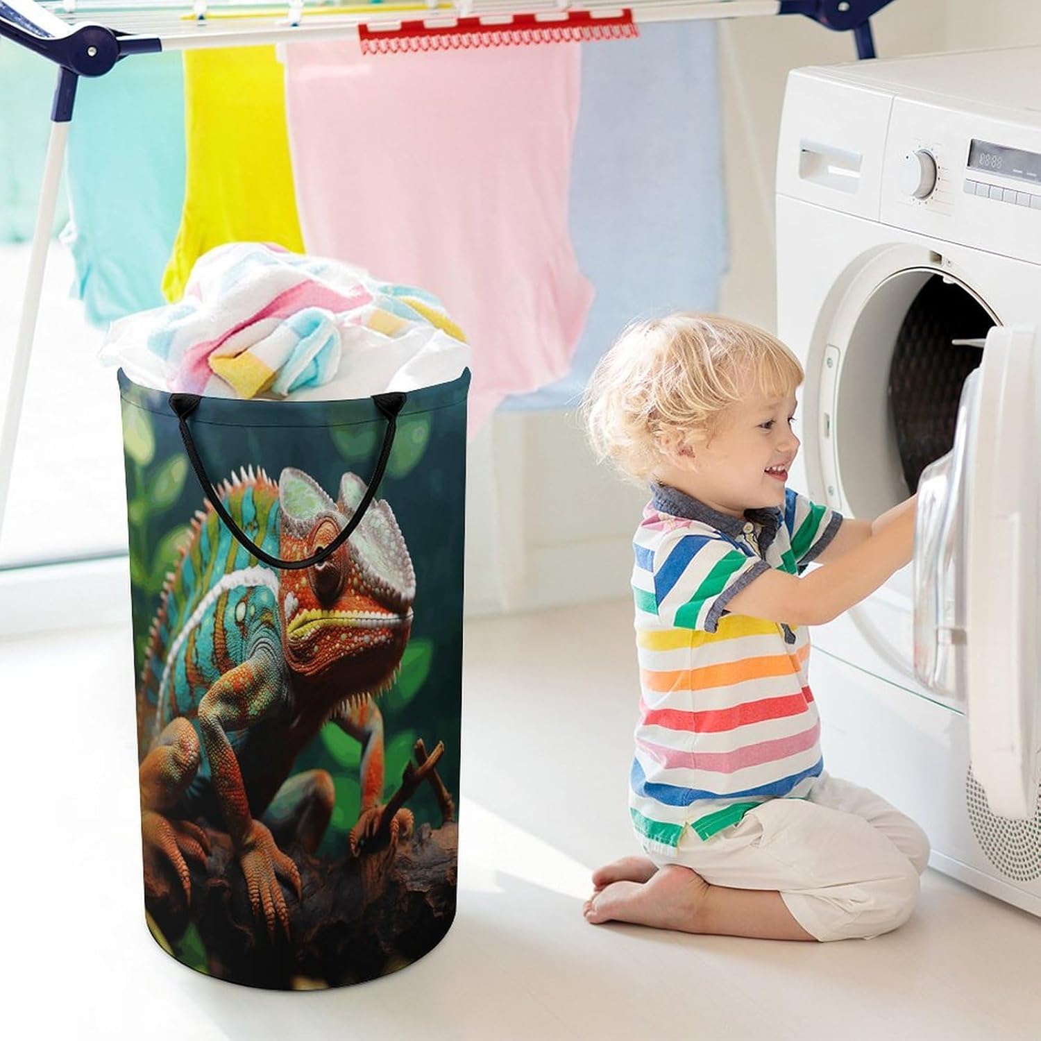 Discover the ultimate solution for home organization with this innovative clothes hamper for bedroom storage.Crafted to serve as a versatile storage for dirty clothes,it combines functionality with style,making it an essential freestanding tall Cute Chameleon clothes hamper for any living space.The narrow laundry bag design ensures it fits effortlessly into corners or closets,while its funny laundry hamper elements inject personality into your room decor laundry hamper setup.Experience thoughtful engineering with comfortable hand straps that allow for convenient carrying,ensuring your items remain secure during transport.As a versatile storage for dirty clothes,it excels in holding a wide array of garments and household miscellany,thanks to its spacious interior.Folding capabilities mean it occupies minimal space when not in use,transforming effortlessly from a practical tool to a stylish room decor Cute Chameleon laundry hamper that complements any aesthetic.Perfect for diverse home scenarios,this Cute Chameleon clothes hamper for bedroom storage adapts to storing and transporting laundry,snacks,or other essentials with unmatched flexibility.It shines as a versatile storage for dirty clothes in bedrooms,bathrooms,or living areas,offering the reliability of a freestanding tall clothes hamper without bulk.The narrow laundry bag profile ensures it navigates tight spots with ease,while its funny laundry hamper design brings a playful touch to mundane tasks.
