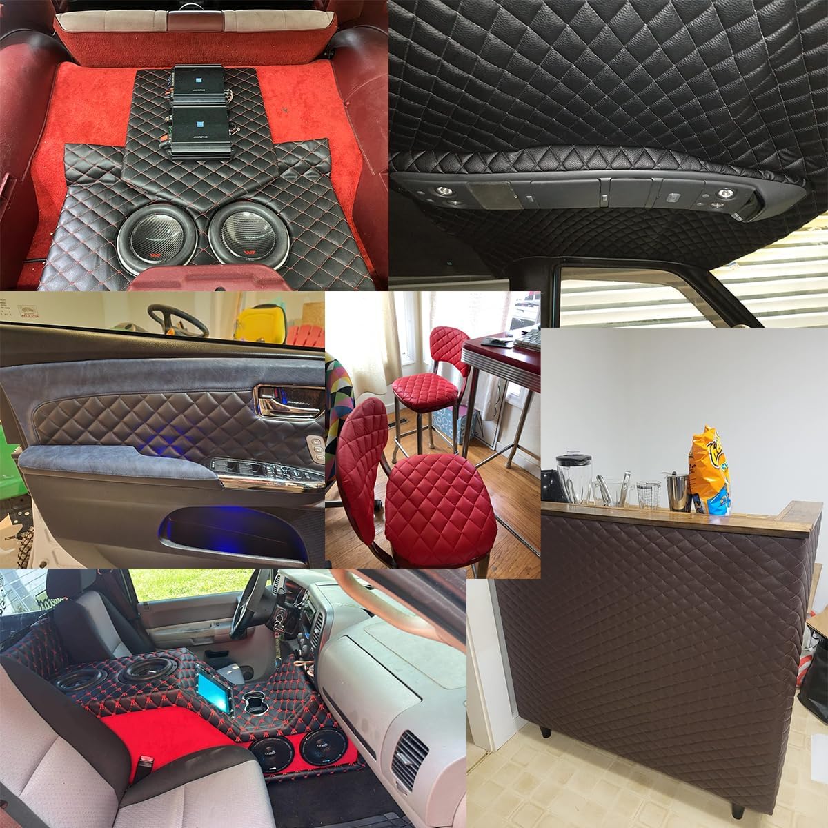 Diamond Quilted Faux Leather Vinyl Foam Backed Automotive, Headliner, Furniture Upholstery, DIY Projects, Headboards, Home Decor & More Size: (L*W)100 x 155 cm/39.4 x 59 inch Due to transportation restrictions, the product needs to be folded when it is sent, and there will be some creases after receiving the goods,It will be restored after a few days.