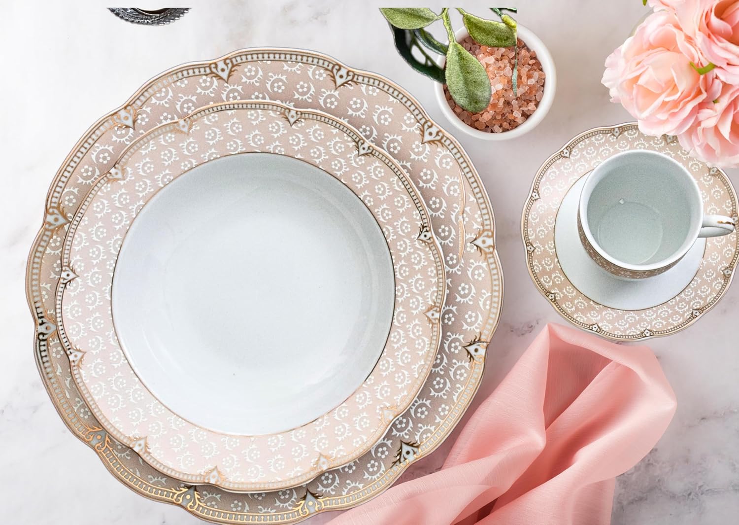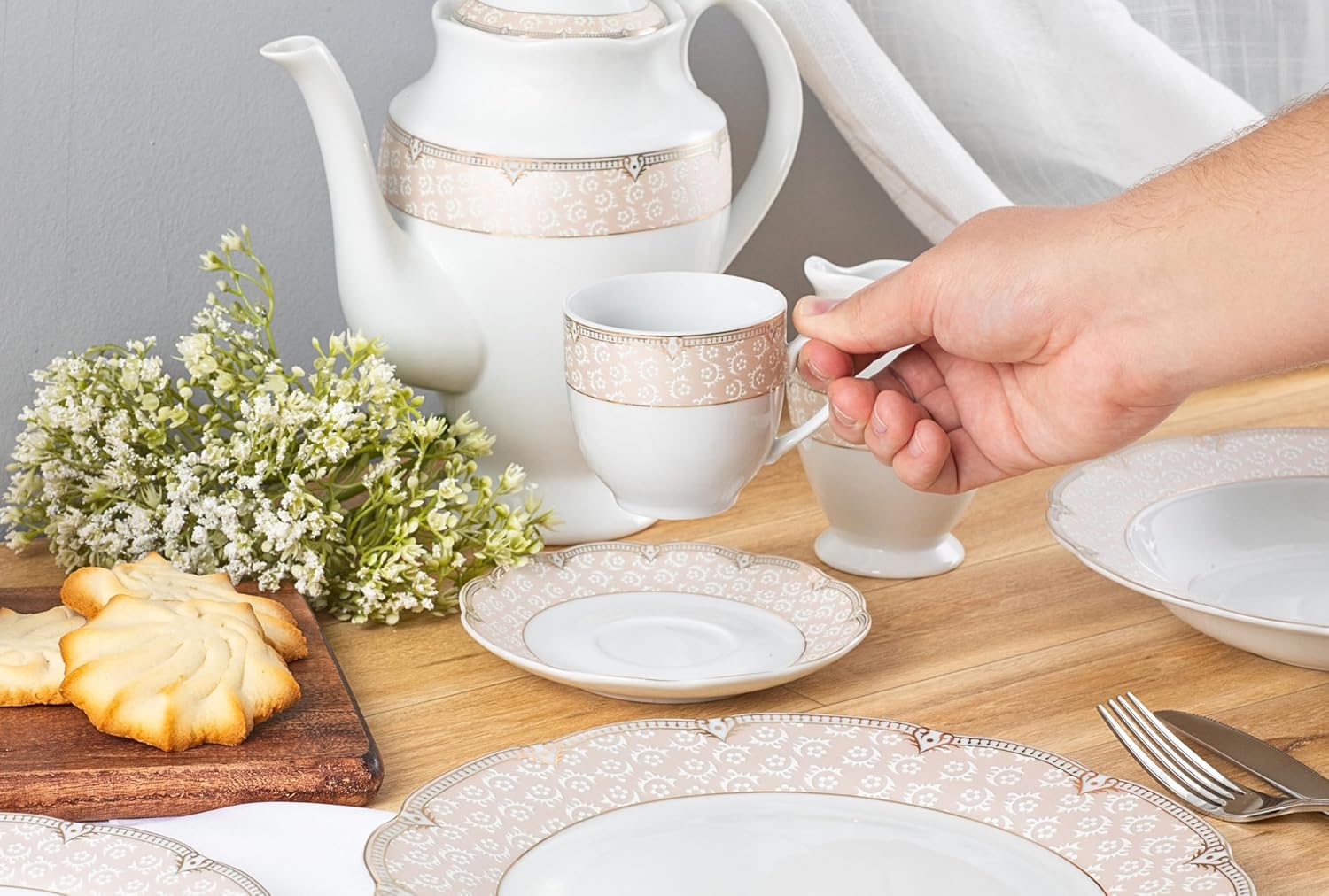 | Included Components | 8 dinner plates, 8 soup plates, 8 dessert plates, 8 cups, 8 saucers, 1 salt shaker, 1 pepper shaker, 1 teapot with cover, 1 creamer, 1 sugar pot with cover, 1 oval plate, and 1 deep salad bowl |