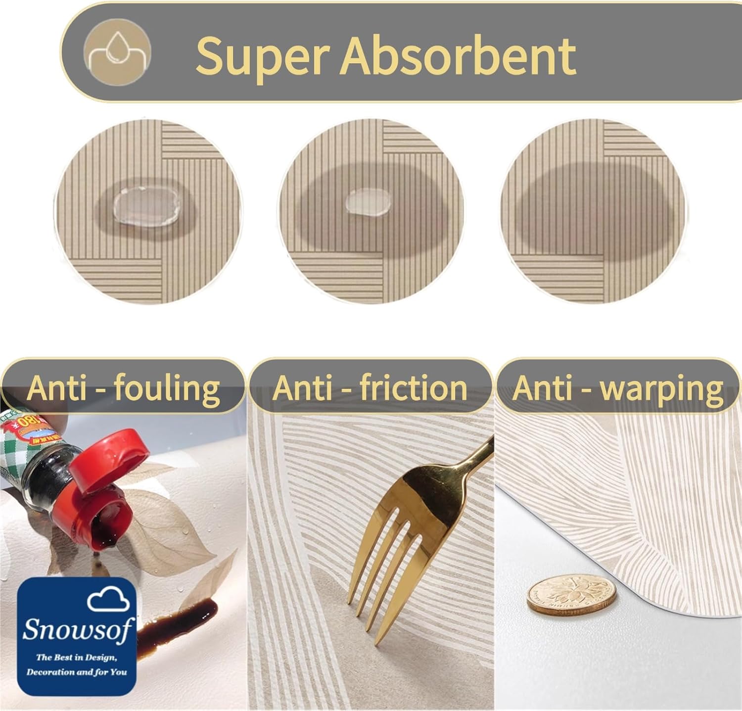 ☕Upgrade your kitchen countertop with the Snowsof Dish Drying Mat – a premium drying mat designed to make your dish drying experience more convenient and efficient. This mat is specially crafted to be thick and super absorbent, allowing it to quickly absorb excess moisture from your dishes, glasses, and utensils, leaving them dry and ready to be put away. ☕Featuring an anti-slip rubber backing, this dish drying mat stays securely in place on your kitchen counter, providing stability and preventing any accidental slips or mishaps. Its stylish design not only adds a touch of elegance to your kitchen but also effortlessly hides stains and spills, ensuring your countertop always looks clean and presentable. Cleaning is a breeze as well, simply wipe the mat clean or toss it in the washing machine for a thorough cleaning. ☕Snowsof Dish Drying Mat offers more than just drying functionality. It can also be used as a coffee mat, coffee bar mat, or a protective pad for your kitchen appliances, adding versatility to your countertop space. Crafted with high-quality materials, this mat is built to last, providing a reliable solution for all your dish drying needs. ☕Invest in the Snowsof Dish Drying Mat and enjoy the perfect blend of functionality, style, and convenience in your kitchen. Make dish drying a breeze with this premium drying mat. Get yours today and experience the difference!