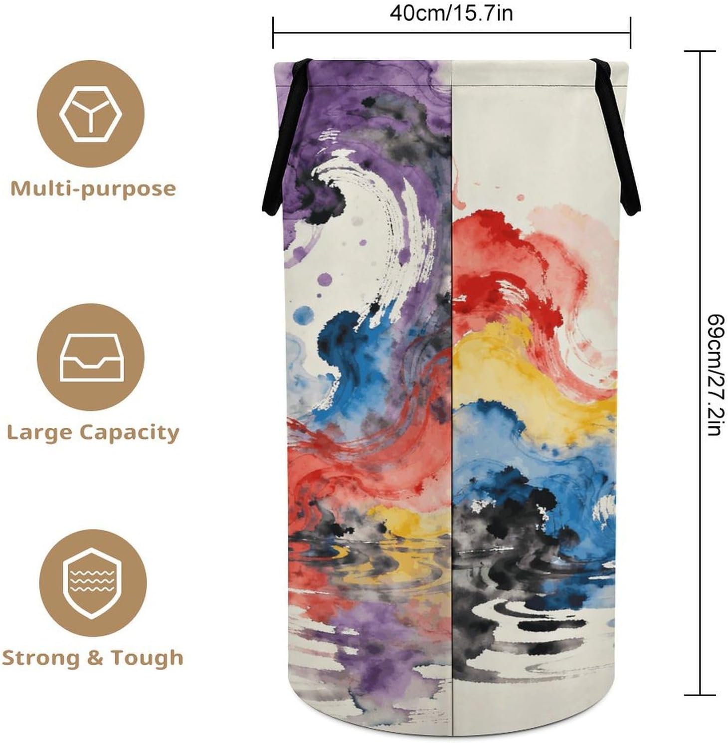 The pattern of the Flowing Color hamper is printed with exquisite patterns, which makes the product more attractive.Chic design allows it to be used in the living room to hold throw blanket, pillows, and reading materials, as well as in the bathroom for towels, or as a laundry hamper.The laundry hamper adopted collapsible design, equipped with handles. It is lightweight and portable for using, storing, and moving conveniently.Flowing Color Clothes hamper is suitable to store dirty clothes washing, place in the room to store toys, and other household goods, keep the house clean and tidy. Perfect laundry hamper for home, office, closet organizer, bedroom, bathroom, college dorm, etc.Gets out of your way when you need it to. This storage basket or laundry hamper is a good gift, which not only meets everyday storage needs but also carries deep care and love, a perfect way to turn thoughtfulness into warmth.