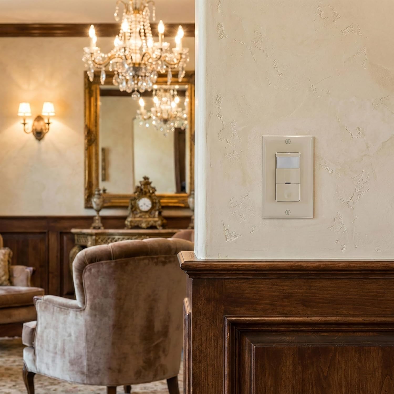 About the Intermatic IOSDOVIV Occupancy/Vacancy Sensor Switch PIR, 180 Degree Ivory This Intermatic (IOSDOVIV) occupancy/vacancy sensor uses passive infrared (PIR) technology to detect when a space becomes vacant. This motion sensor operates by sensing the difference between infrared energy from a human being in motion and the background space. The occupancy/vacancy switch provides manualON and OFF operation and a zero crossing function that increases longevity. This switch fits into a standard decora style wall plate opening. This is a title 24 compliant 'manual on' motion sensor switch.