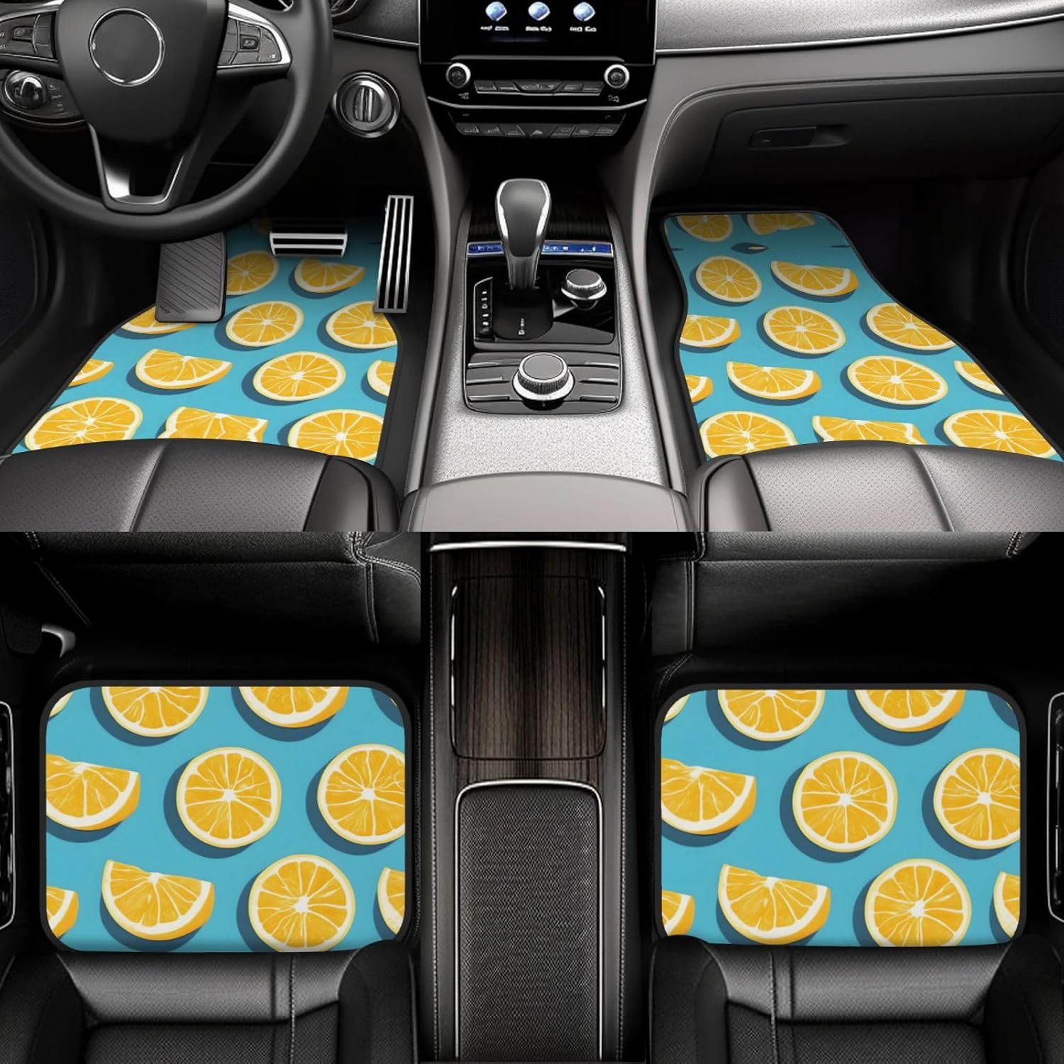Add a touch of elegance to your car. Our Lemon wedges Lemon wedges printed car mats are light-resistant and stay colorful even in the hot sun. They are tightly woven, soft and firm to the touch, easy to clean, and can be easily rinsed to remove stains and keep your car clean. The drop-molding process on the bottom not only prevents dust from entering, but also simplifies the installation process. The non-slip design ensures stability in any driving situation, ensuring your safe driving. Suitable for a variety of models, whether it is a car, truck or van, this mat can perfectly blend with your interior style.