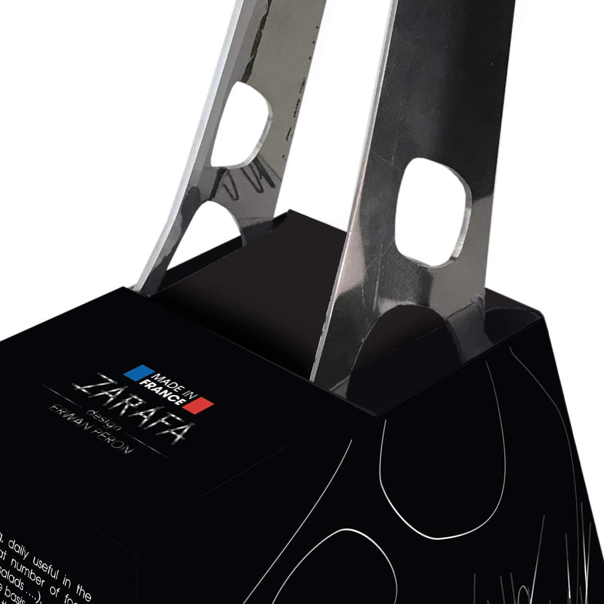 Sélection France is the new Little Balance range of products exclusively designed and manufactured in France. These kitchen and tableware products are manufactured near Thiers. The Zarafa spaghetti tongs are made in France in Escoutoux near Thiers (Auvergne). - Designed by Erwan Peron - 2 dosing openings - Stands upright - Brushed 18/10 stainless steel - Length 22 cm - Dishwasher safe - 100% French manufacture
