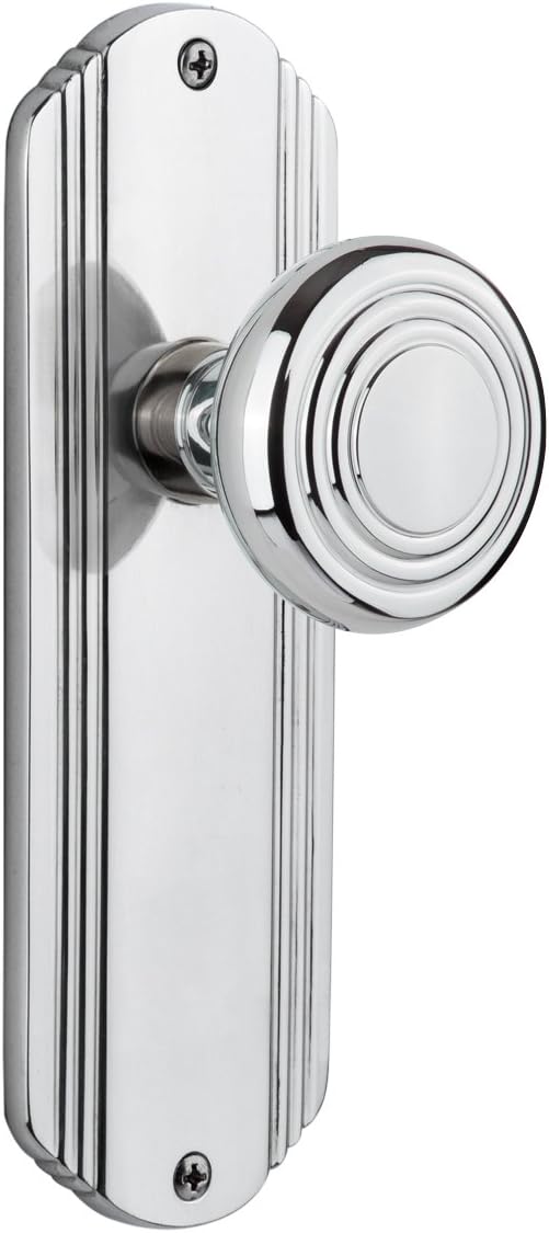 The Deco plate brings to mind old hollywood, jazz, and the great gatsby, all of which inspire a modern twist on great classics from the past. Pair this with our Deco door knob to lend classic lines and a touch of exuberance to your lifestyle. All Nostalgic Warehouse door knobs are mounted on a solid (not plated) forged brass base for durability and beauty.