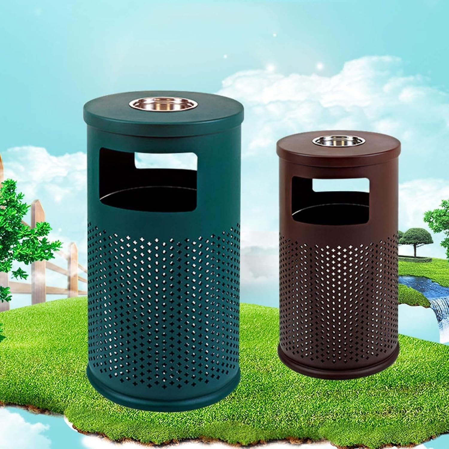 The Outdoor Punching Trash Can with Ashtray is a high-capacity waste disposal solution designed for outdoor and commercial use. Constructed from metal paint and galvanized sheet, this trash can offers durability and resistance to harsh weather conditions, making it an ideal choice for parks, streets, schools, courtyards, and other public spaces.With a 40L capacity (10.5 gallons), this trash can can hold a large amount of waste, reducing the need for frequent emptying. Its drum-shaped design and grooved panel not only enhance its functionality but also ensure easy waste disposal while minimizing its impact on the surrounding environment. Additionally, the built-in ashtray offers a convenient and hygienic place for cigarette butt disposal, keeping your outdoor space clean and tidy.Perfect for commercial and public spaces, this trash can combines functionality and style, serving as a reliable waste solution while also blending seamlessly with your outdoor décor. Available in two colors, it is both practical and aesthetically appealing, ensuring that your space remains clean and organized.
