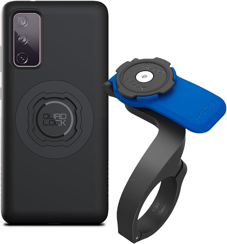 Quad Lock Out Front Mount with Phone Case Kit Take your rides to the next level with the Quad Lock Out Front Mount and Phone Case Kit. Featuring our patented dual-stage lock, this kit ensures your smartphone stays securely attached to your bike, giving you the confidence to tackle any terrain. Simply twist and lock to access your favorite cycling apps such as Strava, MapMyRide, or Apple Maps, then detach just as quickly when you need to capture a photo or take an important call. The Out Front Mount is designed for both performance and flexibility. It can be reversed for over-stem mounting and fits handlebars sized 22 mm, 25.4 mm, 31.8 mm, and 35 mm (⅞", 1", 1-¼", 1-⅜"). Built with durable stainless steel hardware, this mount is made to last and is also compatible with the Quad Lock Camera/Light Adaptor, as well as all Quad Lock Cases and Universal Adaptors. The included Quad Lock Phone Case offers everyday protection while maintaining a sleek and slim profile. Constructed with a tough polycarbonate core and impact-absorbing TPU edge-to-edge shell, the case provides reliable impact resistance and protection against drops. With its soft-touch finish and protective lining, it is comfortable to use daily while staying compatible with wireless charging¹. Together, the mount and case deliver a secure, versatile, and protective solution for cyclists who demand the best.