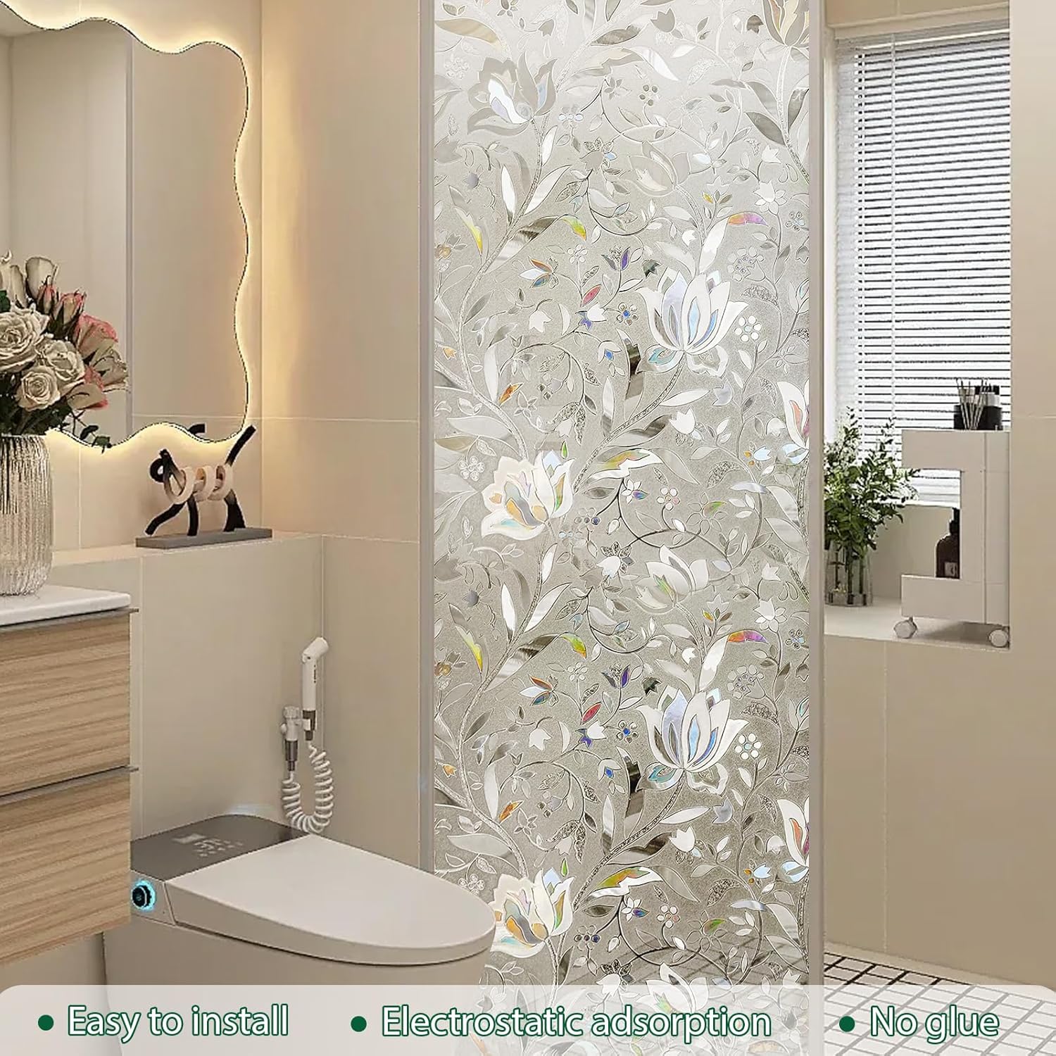 Shackcom Privacy Frosted Window Film Renovate your living space with the least amount of work and costs. Bring magical dressoscopic light into your room! Advantage: 1. High security: Static adhering to the glass, adhesive-free. 2. Privacy protection: to provide more privacy. You can finally feel free at home 3. Reject UV ray: 96% blocking UV rays will slow down your furniture's obsolescence 4. Totally reusable, usable on smooth, even and clean glass surface Installation Tips: 1. Measure the size of your window, cut the film to the correct size, about 1 inch larger than the window 2. Clean your window thoroughly 3. Spray a lot of water on the glass. The more water, the easier it is to stick 4. Remove backing, apply the smooth side of the film to the glass and wet the surface of the film 5. Squeegee to remove water and bubbles. Scrape from top to bottom, left to right, make sure there are no bubbles 6. Trim extra film on edge of the frame 7. After trimming the film, if it is warped, please open the four corners of the film and spray water until the window film is completely attached to the glass rainbow window privacy film privacy film for glass windows tulip window privacy film frosted glass window film window film privacy one way window films window film rainbow privacy window film sun blocking window decals window cover window coverings bathroom window privacy film