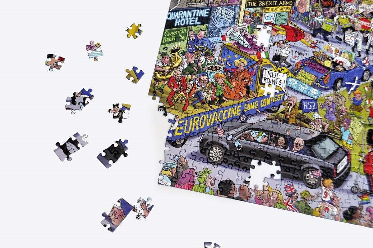 The 2021 According to Blower Jigsaw Puzzle is the latest addition to The Telegraph’s celebrated puzzle series! This 1000-piece masterpiece hilariously captures the unforgettable moments, key figures, and major events of 2021 in the signature satirical style of Blower, The Telegraph’s acclaimed cartoonist. Relive a year full of drama, humor, and history with this intricate and engaging puzzle—perfect for collectors, puzzle enthusiasts, and fans of political satire.