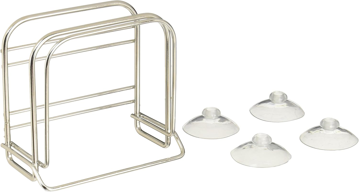 Neatly stores 2 knives and 1 cutting board. Rubber feet to prevent damage to the sink.