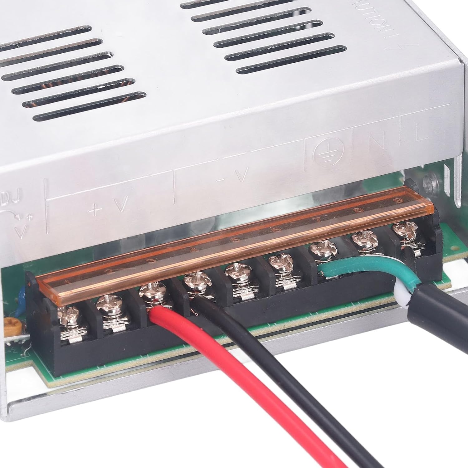 1. Aluminum Alloy Cover: This AC to DC converter power supply is made of excellent aluminum alloy for the Cover, which is sturdy, not easy to be damaged, and has a long service life. 2. Built In Wire Integration Design: This power supply adapter transformer adopts built in wire integration design, with AC110V to DC12V, 41.6A. 3. Wide Application: This AC to 12V DC converter has a wide range of applications for portable PCP air compressors, high pressure PCP compressor pumps, airsoft guns and paintball. 4. Safe And Stable: This AC to DC converter transformer is safe and stable with overload, overvoltage protection, leakage protection and short circuit protection. 5. All Copper Ni Plated Terminals: This AC to DC converter is made of all copper ni plated terminals with good conductivity and high conversion efficiency, erosion proof, aging proof, and the power converter is not limited by time and space. Specification: Item Type: AC to DC Converter Material: Aluminum Alloy, Brass packing list: 1 x AC to DC Converter