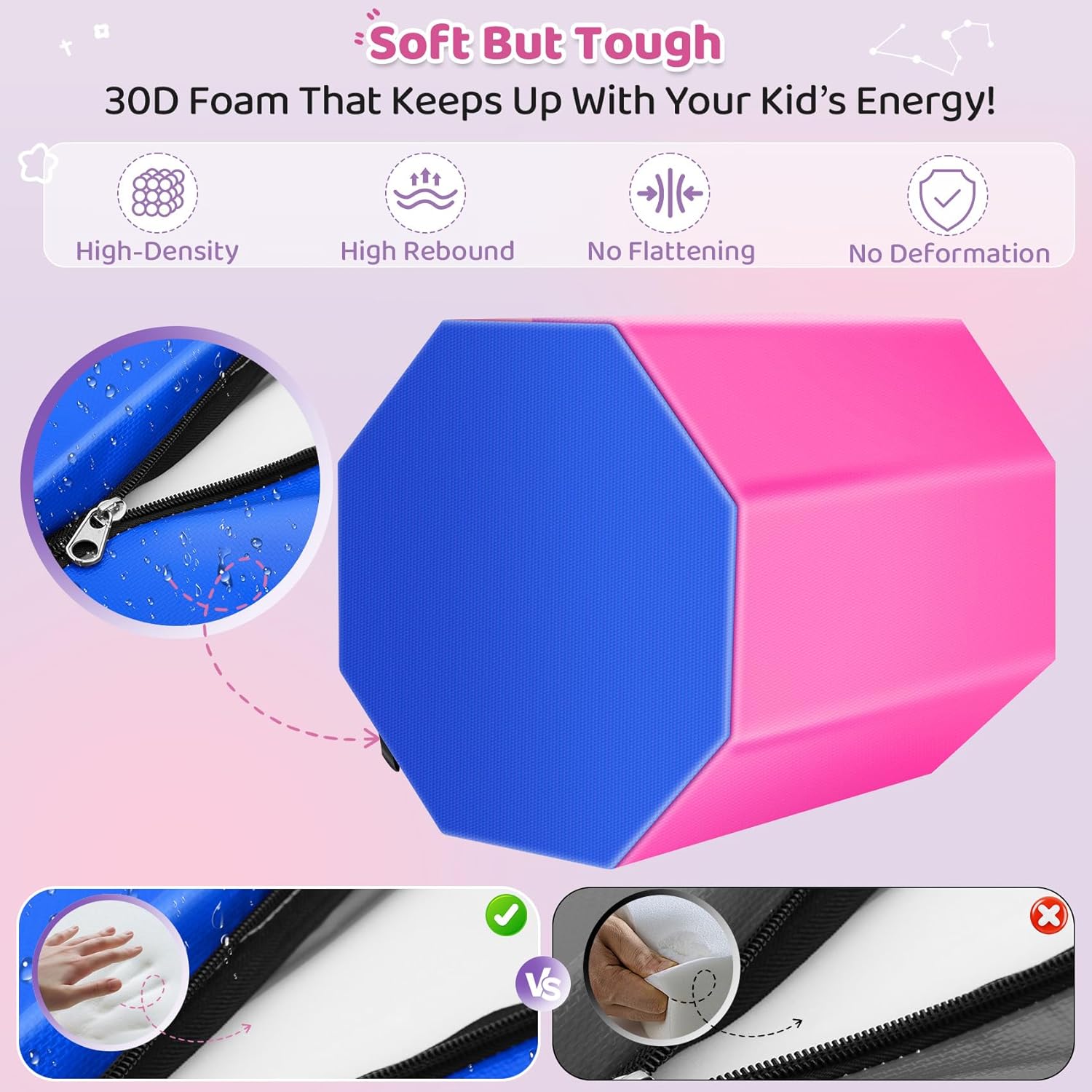 20"x20" Gymnastics Octagon Tumble Mat with Carrying Handles, Somersault Backbend Tumbling Trainer for Home Gym Exercise