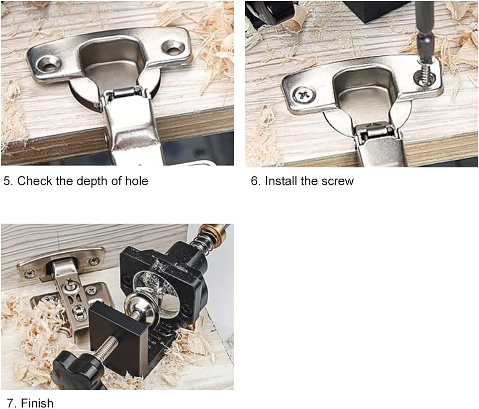 Specifications: Material: Aluminum alloy, brass Color: Black Item Size: 17*6*5.8cm / 6.69*2.36*2.28in Item Weight: 400g / 14.1oz Packing List: 1 * Hinge Jig 1 * Hex Socket 2 * Allen Wrench
