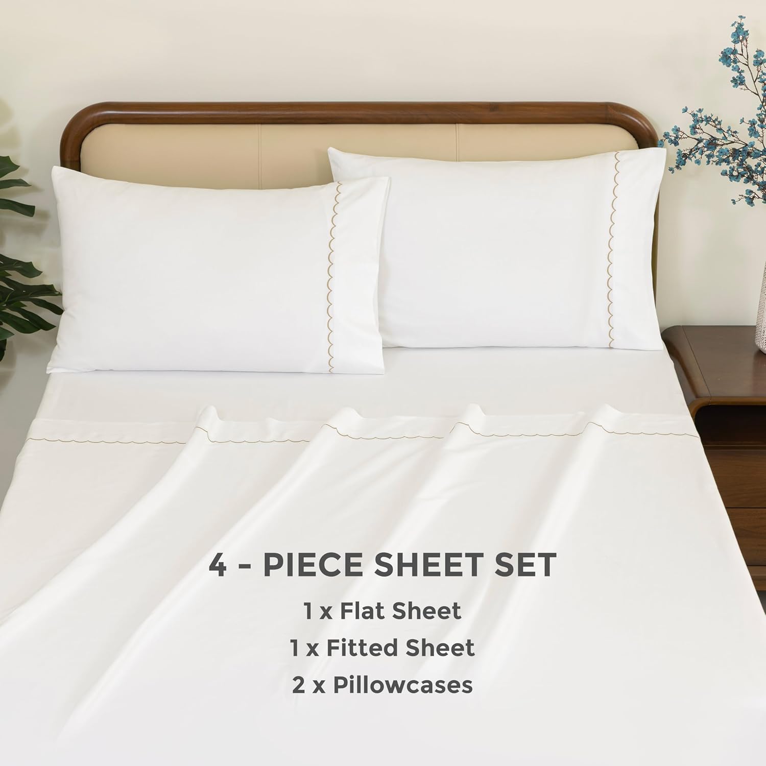 • HOTEL-LIKE SOFTNESS: Experience premium comfort with our 100% cotton embroidered sheet set, crafted with a smooth 300TC. Elegant embroidery adds a refined and timeless touch to your bedding décor.