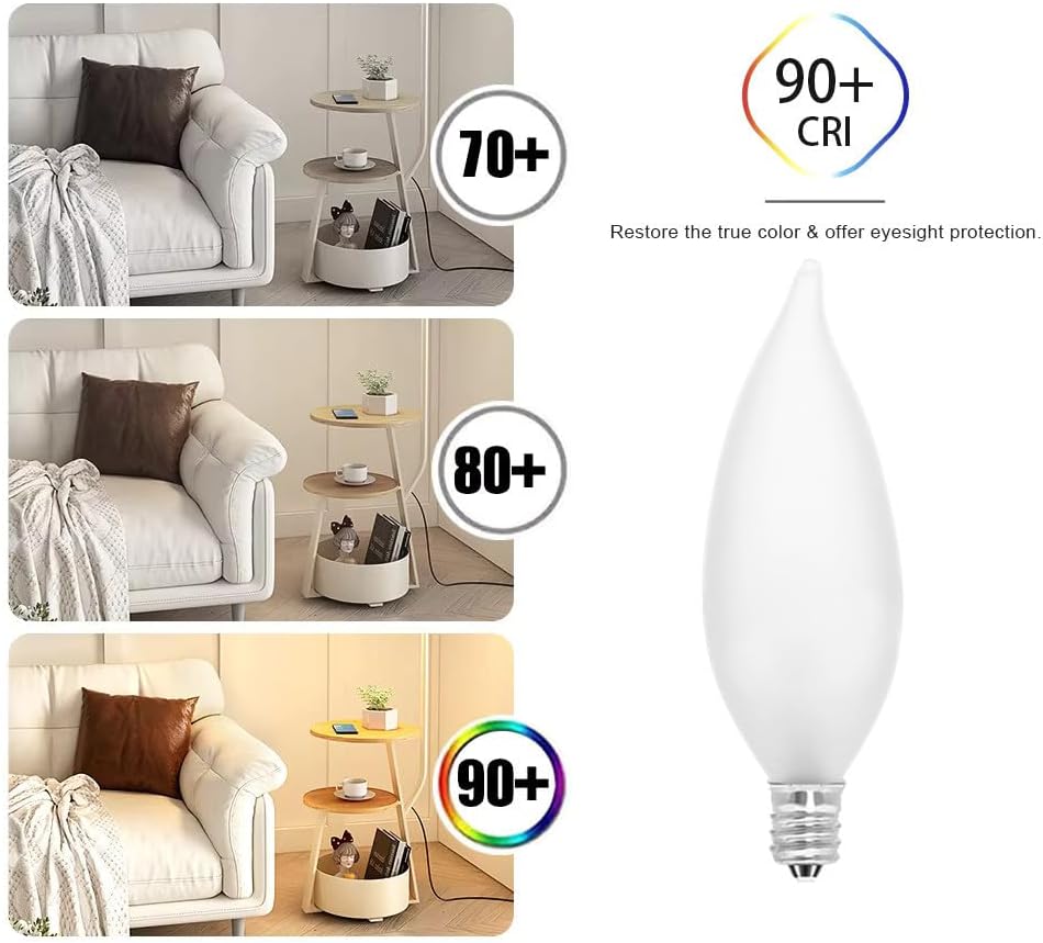 KFDKRG Lighting's 6 pack classic incandescent flame tip chandelier lamps deliver a beautiful beam of frosted light to any setting while only utilizing 60W of energy to produce a comfortable 2700K light. Featuring an E12 candelabra screw base, these lamps were meticulously designed to fit in a variety of applications. With an average lamp life of 2500 hours, KFDKRG Lighting's flame tip chandelier bulbs do more than just illuminate a room; these bulbs add a layer of life to any and all décor. Perfect for chandeliers, ceiling fans, wall sconces, pendants, and lamps, these 60 watt candelabra light bulbs are both functional and stylish, ensuring a warm ambient lighting experience that enhances the look and feel of your space.