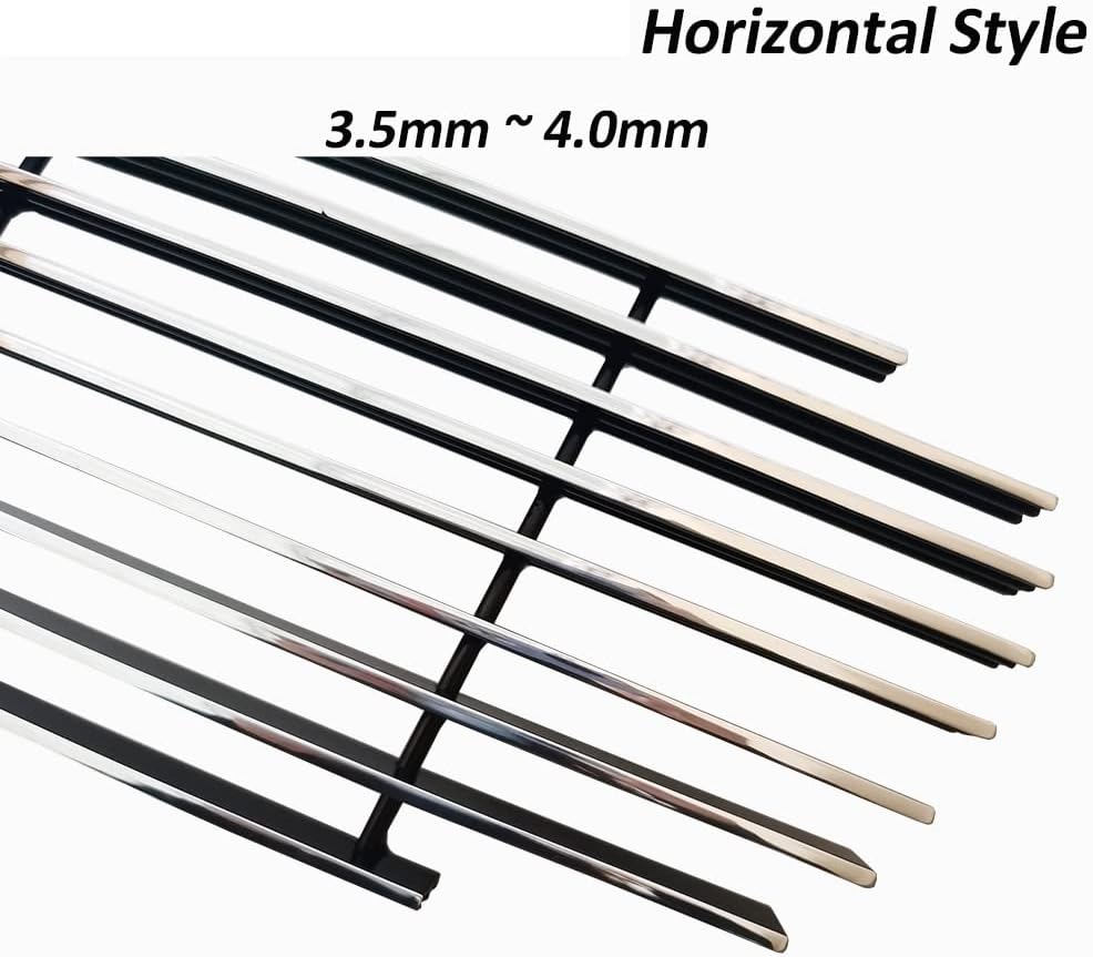 Features FITMENT: *1998-2002 Chevy Camaro AIR CRAFT GRADE:Air craft grade 6061-T6 aluminum solid billet grille inserts can protect the front end of yourvehicle. Each grille guarantees a shiny polished surface with black satin powder coating on the back. BAR WIDTH: 3.5mm ~ 4.0mm (1/8in ~5/32in) APPEARANCE:Corrosion resistant aluminum billet grilles in polished mirror finish chrome color. PACKING:Grille insertonly,Hardware and instruction are included.But logo or emblem, frameor shell is NOT included.Item Specifications Materials : Aluminum Style :Horizontal Billet Position : Main Upper Pieces :1 pc Installation:Replacement (Drilling Required) Special note :Grille insert only, logo or emblem, frame orshell is NOT included.Return Policy We accept return or exchange within 30 daysafter package delivered. Products must be in thecondition you received them and in the original box and/orpackaging.