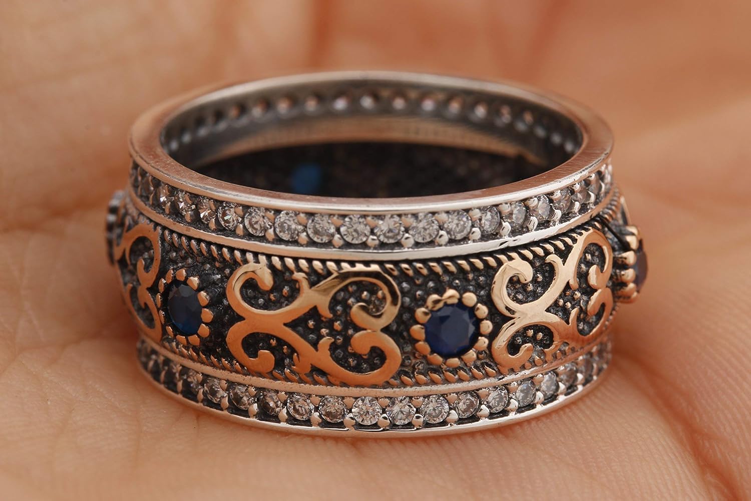 Stone : Sapphire Stone Color : bronze Weight : 7 grams Size : 0.42 inch diameters Material : 925 K Sterling Silver and Bronze Production : Fully Handmade Elevate your style with our Handmade Turkish Authentic Jewelry Round Shape Cut Sapphire Topaz 925 Sterling Silver Band Ring. Crafted with precision by skilled Turkish artisans, this exquisite ring exudes authenticity and traditional craftsmanship. Adorned with round-cut Sapphire and topaz stones, the ring boasts a captivating design combining elegance and sophistication. The vibrant hues of the gemstones are beautifully complemented by the lustrous 925 sterling silver band, adding a touch of luxury to any ensemble. This stunning ring is a fashion statement and a meaningful gift for the special woman in your life. Whether it's a birthday, anniversary, or any other occasion, this ring is sure to delight and impress. Available in various sizes, it ensures a perfect fit for every wearer. Make a statement of elegance and beauty with our Handmade Turkish Authentic Jewelry Round Shape Cut SapphireTopaz 925 Sterling Silver Band Ring. Add it to your collection or gift it to someone special to cherish for a lifetime. This description highlights the craftsmanship, design, materials, versatility, and suitability as a gift for women.