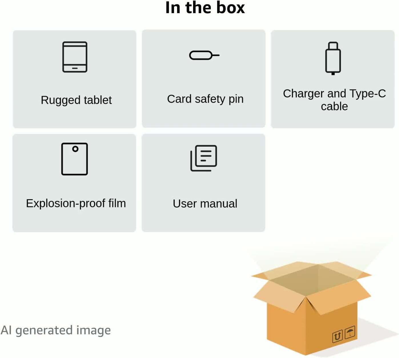 | BuiltIn Media | 1x Card Safety Pin, 1x Charger& Type-c Data Cable, 1x Explosion-proof Film, 1x Manual, 1x R10 Pro Rugged Tablet |