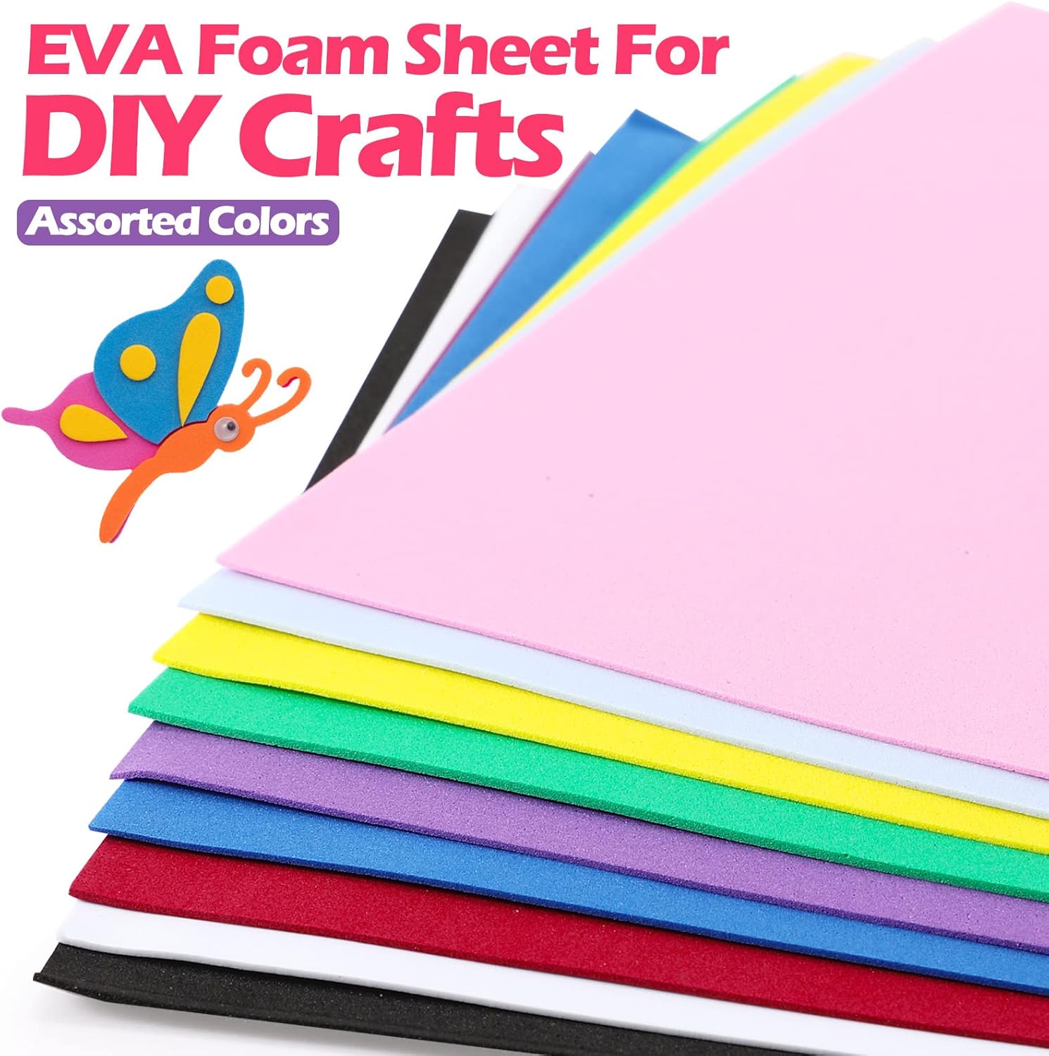 Features: You can present the EVA foam sheets as gifts to your families and friends for holidays, birthdays, festivals and more, delivering your care and love. The foam sheets for crafts are lightweight and portable, convenient for you to carry and store, not taking up much space. Specifications: Material: mainly EVA foam Color: as the pictures shown Size: Length: about 12 inches/ 30.48 cm Width: about 9 inches/ 22.86 cm Thickness: about 0.04 inches/ 0.1 cm Package includes: 150 x Foam craft sheets Notes: These EVA foam papers are applied for DIY handicraft projects, not applied for industrial purpose Manual measurement, please allow slight errors on size. The color may exist a slight difference due to different screen displays. The EVA material will have some odor, please put our product on a ventilate place before use