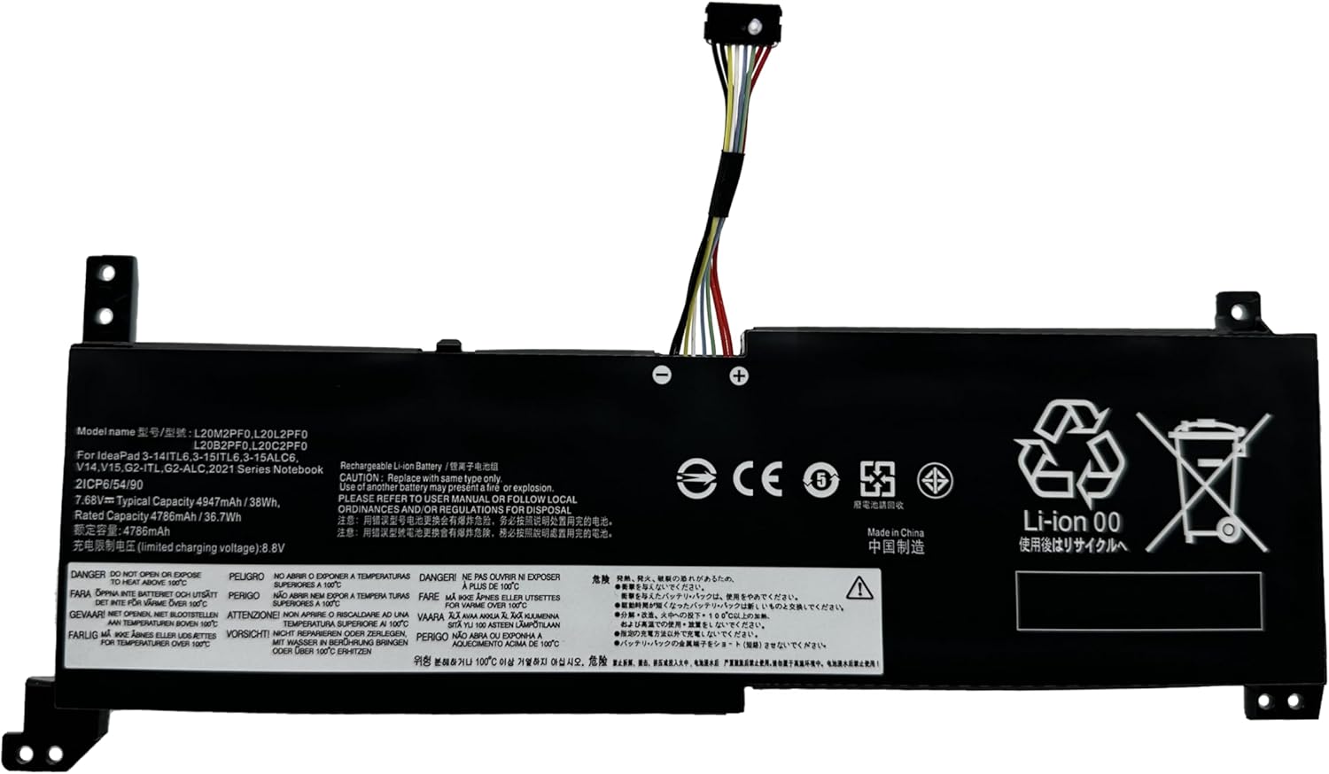 • Battery Model : L20M2PF0; Voltage:7.68V; Capatity:38Wh 4947mAh 2-Cells; Color:Black