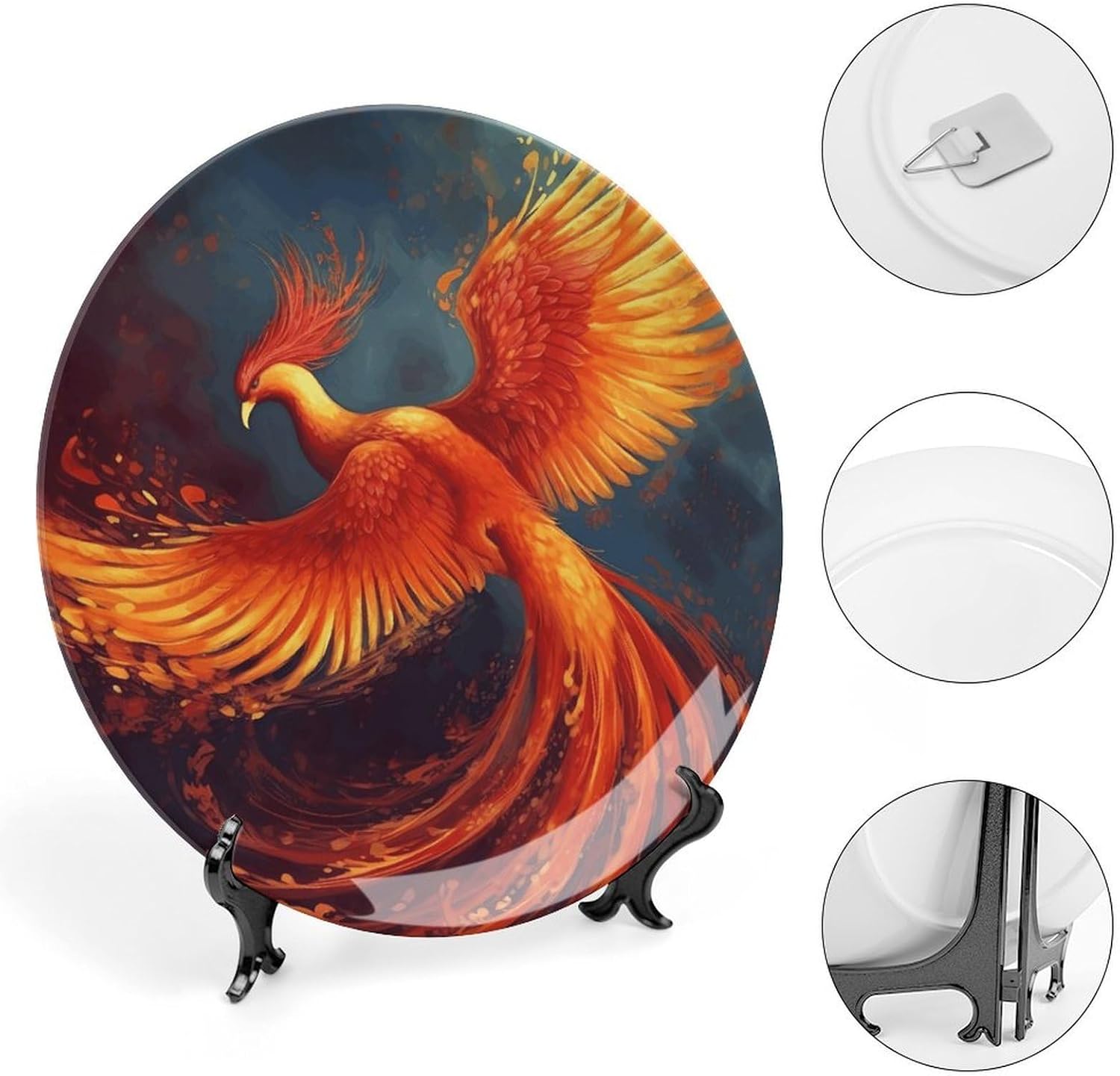 Our versatile ceramic Orange Red Phoenix plates are made of smooth ceramic material. The lightweight bone china plates can be easily placed anywhere you like, showcasing their decorative charm.This bone china dessert plate is available in four sizes: 6 inches, 7 inches, 8 inches, and 10 inches, making it an ideal choice for display items.Personalized decorative plates, perfect for displaying handicrafts, are an ideal choice for home décor. This vertical ceramic plate makes a wonderful gift for housewarmings, anniversaries, weddings, birthdays, Thanksgiving, New Year's, or any holiday.This French country-style ceramic plate is suitable for decorating or using in living rooms, offices, hallways, dining rooms, entrances, hotels, holiday homes, and other places.
