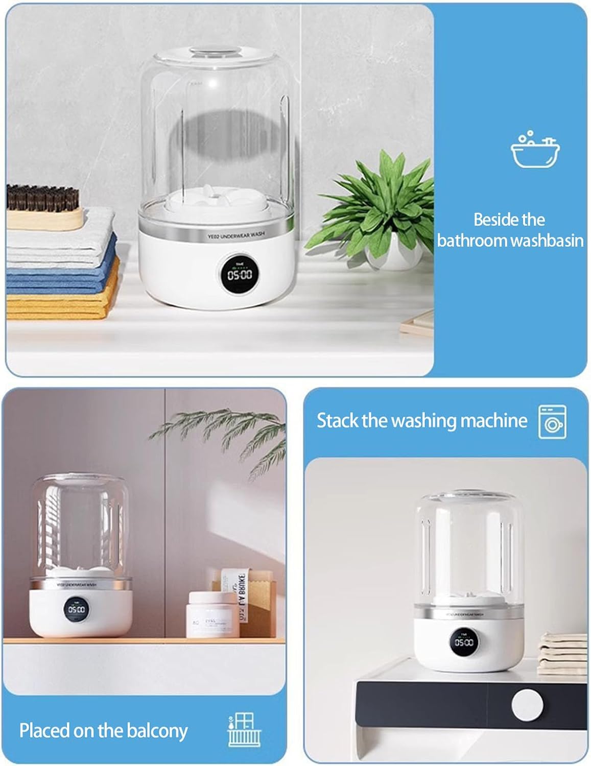 Small Laundry Washer Efficient Underwear Washers Washing Machine Small Washers For Home And Travel UseFeatures:laundry with this portable washing machine featuring operations and vibrations technology for gentle fabric Designed with easy installation body, this laundry cup eliminates space constraints and setups hassles for travelers, students, and outdoor activity enthusiasts requiring efficient undergarment hygienes during trips or in living space intimate apparel in hotels, dormitories, or campsites using cup sized washer that fit seamlessly into travel bags.Combines powerful with quiet operations, ensuring thorough sanitization of delicate fabrics without damaging sensitive materials.Specifications:Component: ABSBattery Capacity: 4000mAhSize: Approx. 5.2x5.2x8.66inch(13.2x13.2x22cm)Package Includes:1x Portable Washing MachineNote:Please allow 1-2cm errors due to manual measurement.Due to the differences between different monitors, the picture may not reflect the actual color from the item.