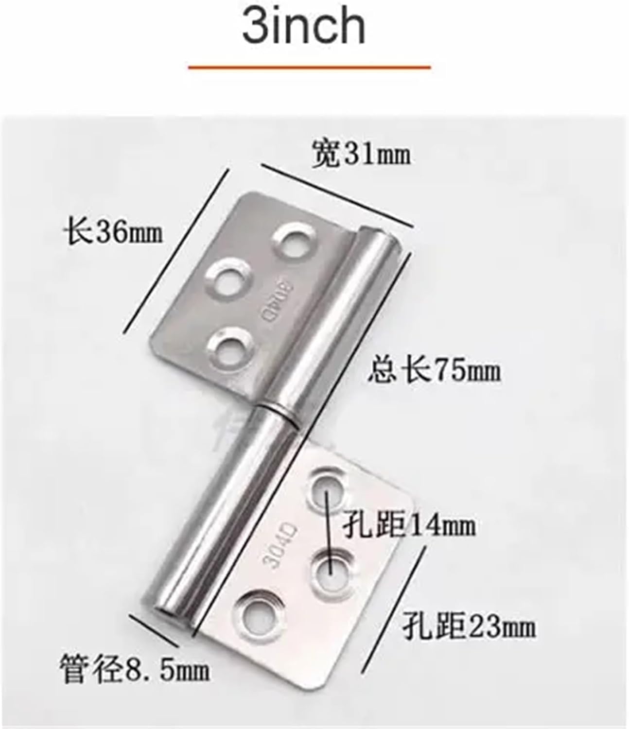 Gate HingesStainless Steel Flag Shape Detachable Hinge Thickened Blades Load-bearing Door Hardware Accessories 1PcsMaterial: Stainless steelThickness : 3inch-1.5mm4inch- 2.8mm5inch- 2.8mmType : Door Hinges